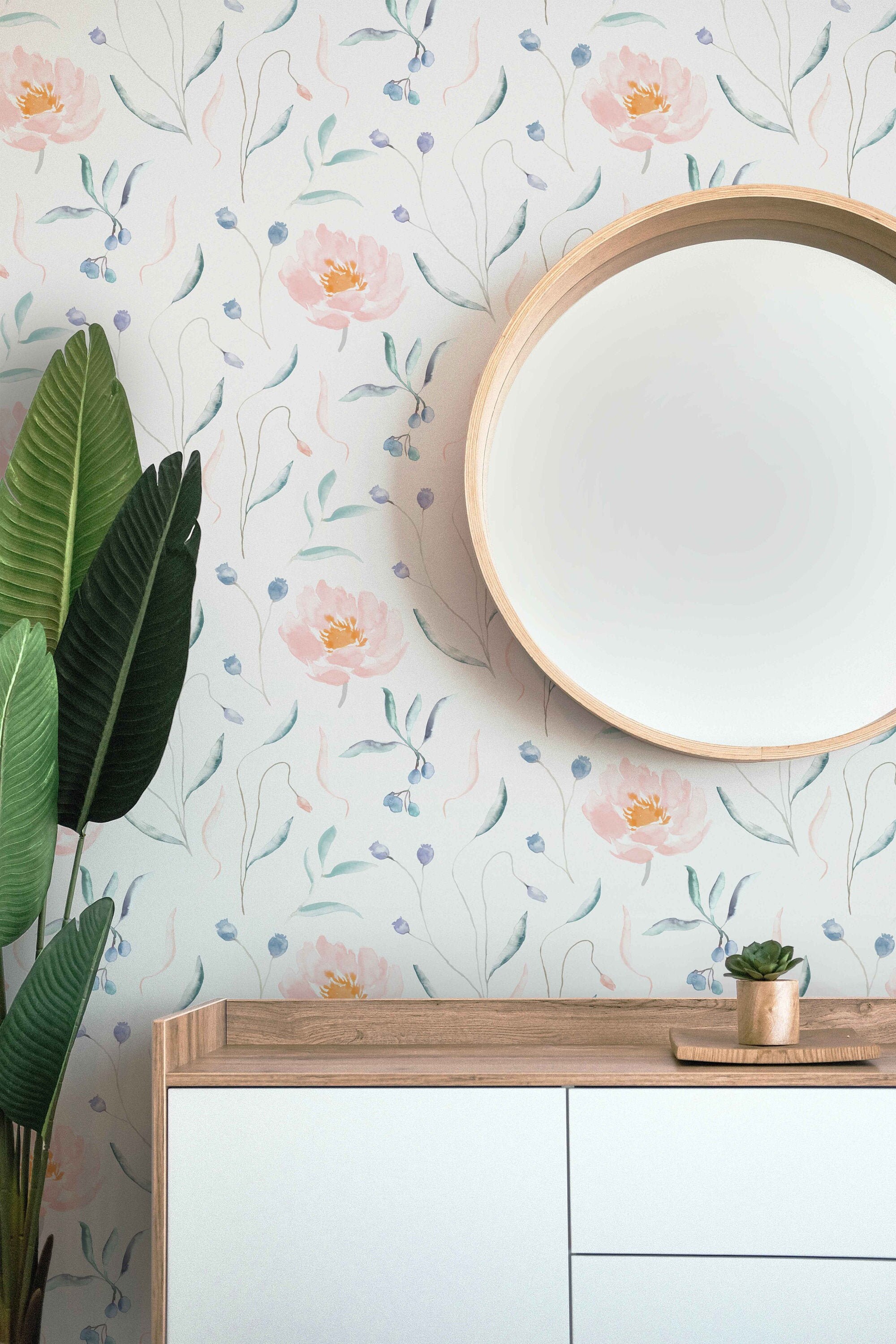 Simple Floral Wallpaper Botanical Wallpaper Peel And Stick