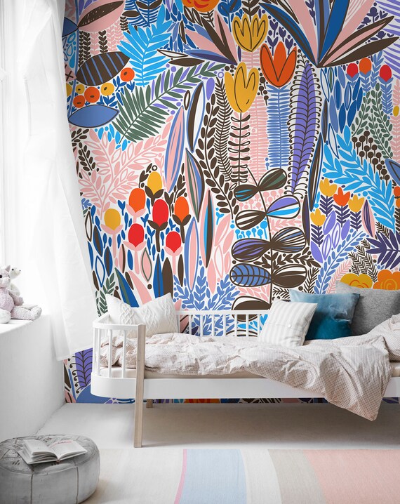 Cute Floral Wallpaper Floral Wallpaper Nursery Wallpaper Etsy