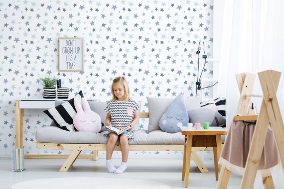 Blue Stars Removable Wallpaper Nursery Wallpaper Peel And Etsy