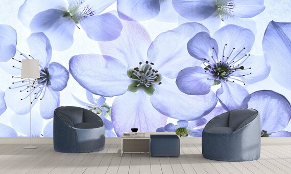 Flower Works Blue Removable Wallpaper Purple Flower Peel And Stick