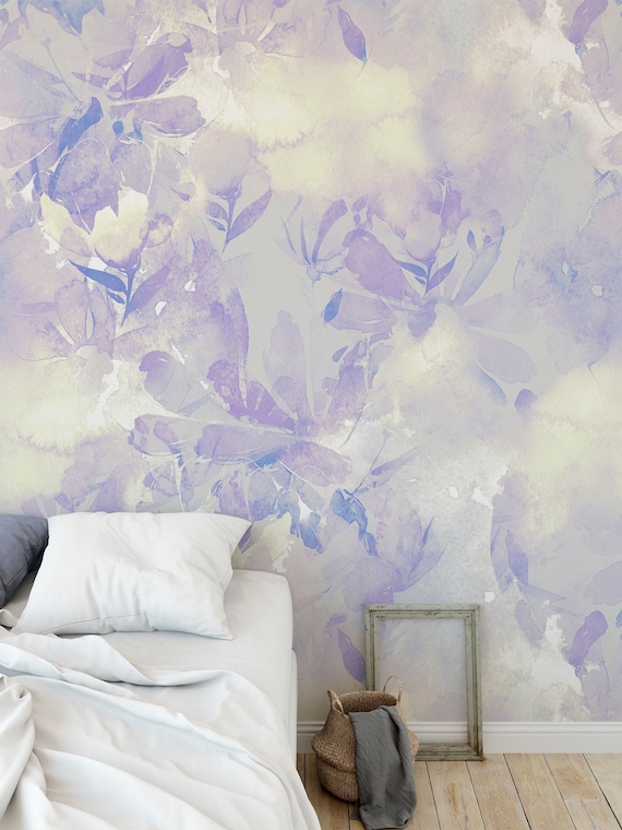 Removable Wallpaper Self Adhesive Wallpaper Purple Watercolor Etsy
