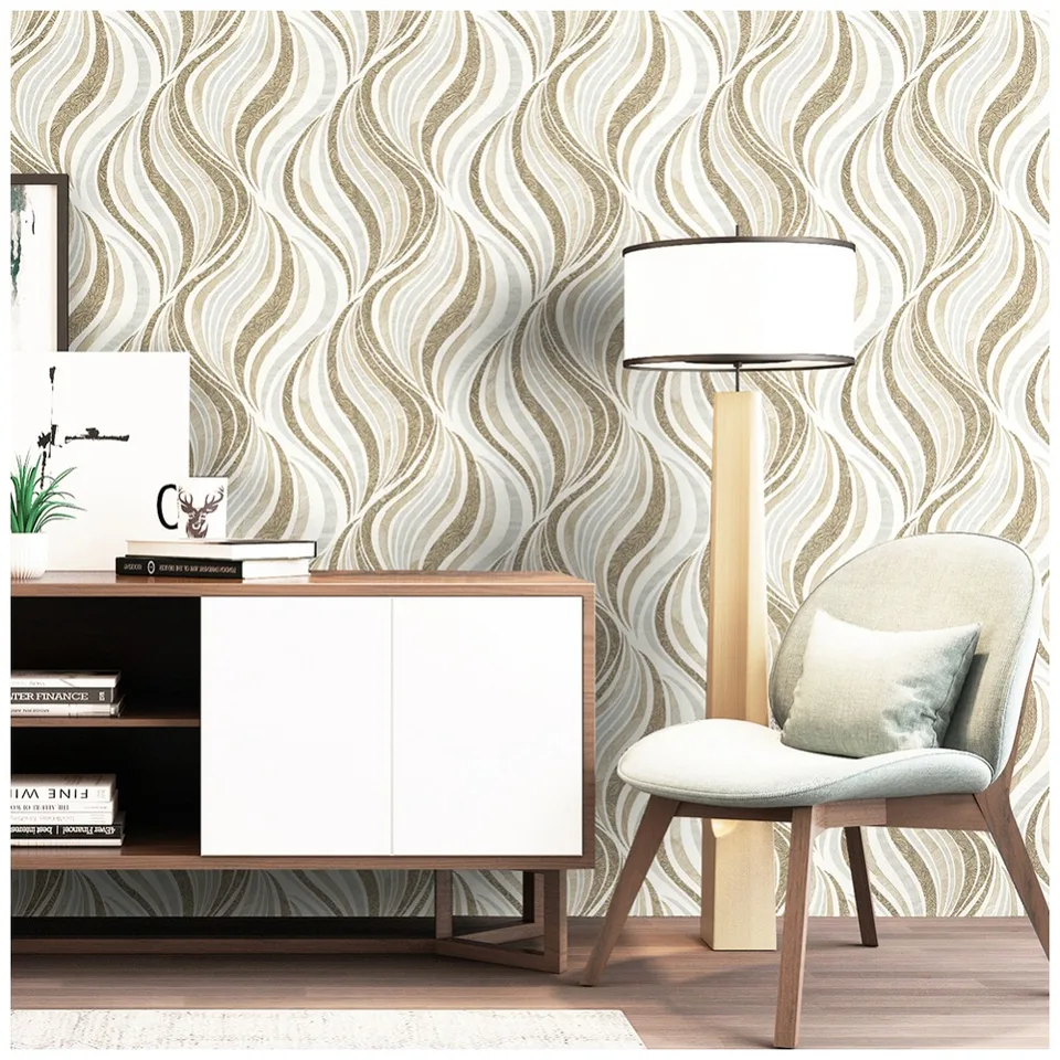 Haokhome Modern Stripe Wave Peel And Stick Wallpaper Roll For Wall