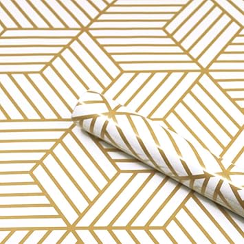 Rmk10704wp Peel And Stick Wallpaper Striped Hexagon White And Gold