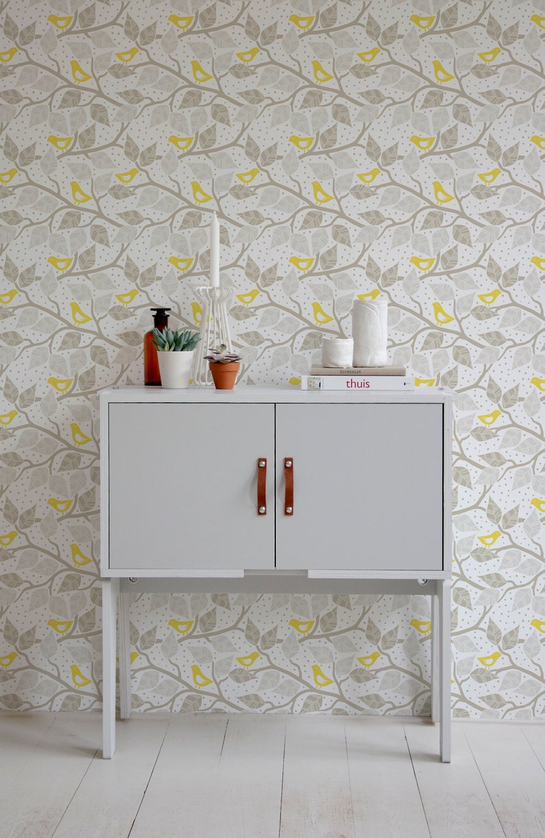 Branch Birds Wallpaper Yellow Birds Birds Branch Peel And Etsy