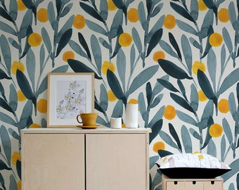 Removable Peel And Stick Wallpaper Yellow Floral Rustic Etsy