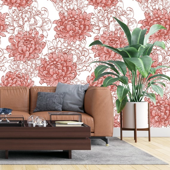 Removable Wallpaper Vintage Peony Peel And Stick Wallpaper Etsy