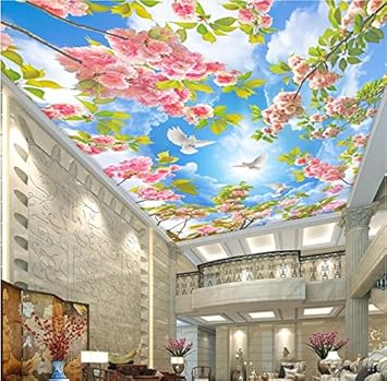 Amazon Com Mznm Custom 3d Blue Sky White Clouds Cherry Ceiling