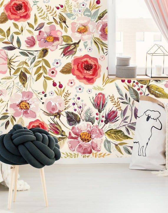 Removable Wallpaper Vintage Berries And Flowers Peel Stick Etsy