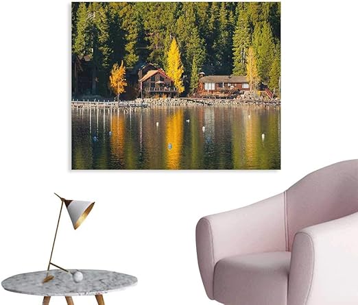 Amazon Com Unprecall Lake Tahoe Photographic Wallpaper Carnelian Bay Photography Log Cabin In The Woods Holiday Destination Lakeside Wall Poster Multicolor W36 Xl32 Posters Prints