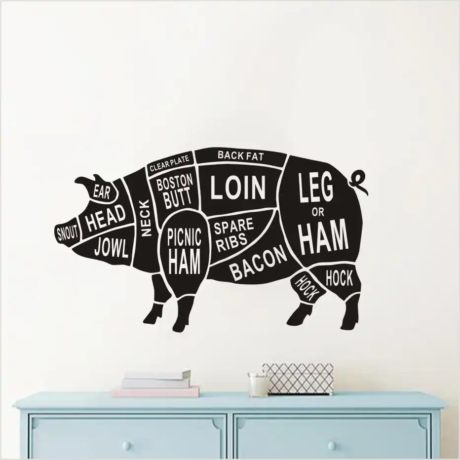 Cartoon Animal Body Part Piggy Pig Wall Sticker For Kitchen