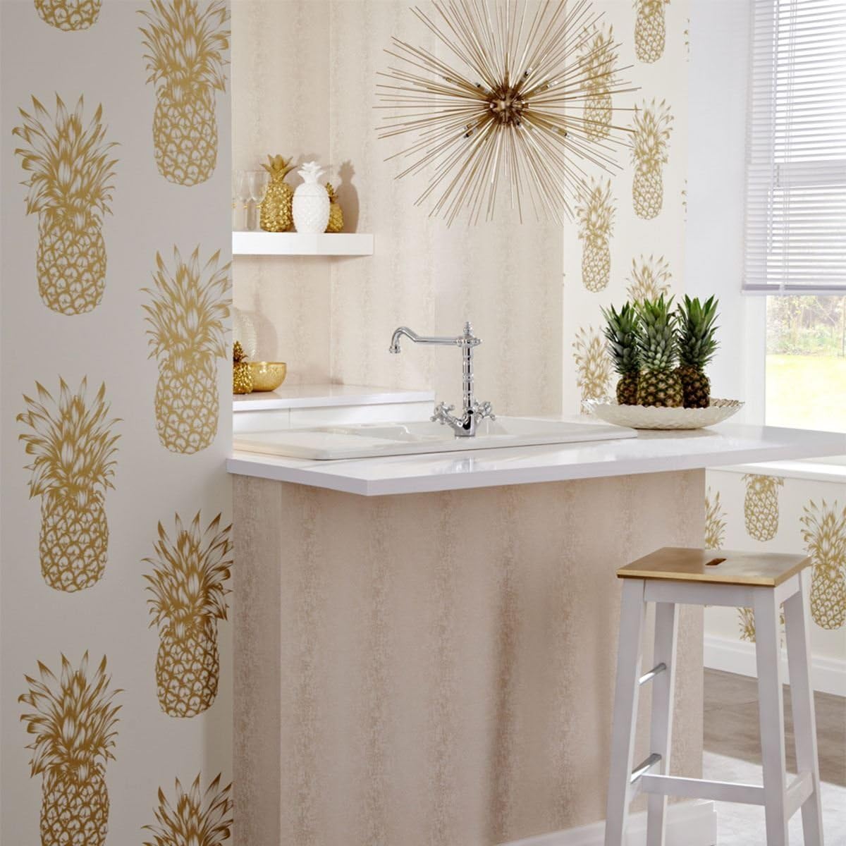 Amazon Com Arthouse Copacabana Gold Pineapple Wallpaper Modern