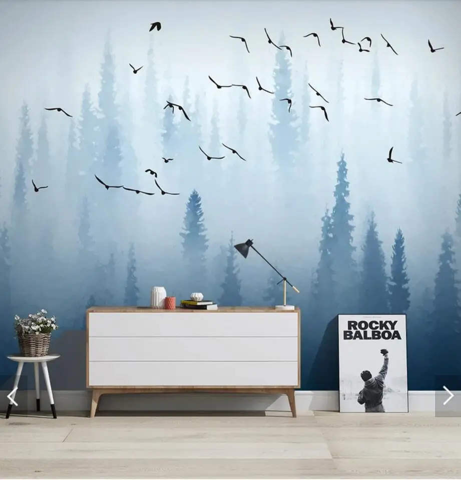 Decorative Wallpaper Pinewood Birds Blue Modern Simple Tv