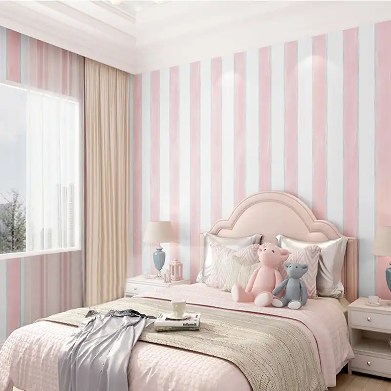 Baby Nursery Room Kids Girls Room Pink White Striped Wallpaper