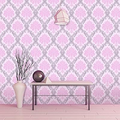Lifavovy Pink Damask Peel And Stick Wallpaper Waterproof Removable