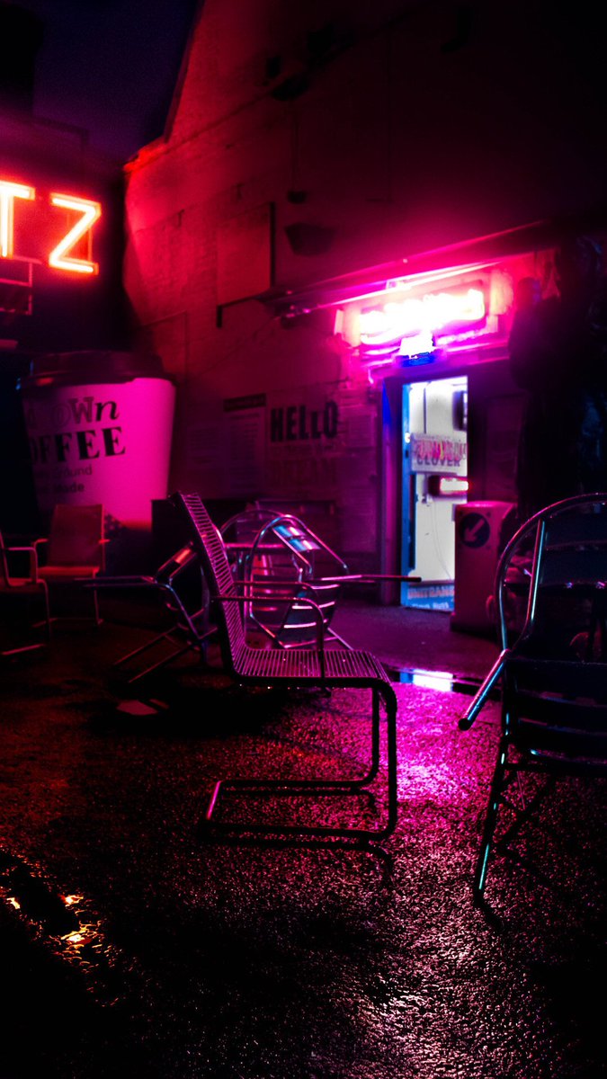 Wallpaper Id 234180 A Pink Neon In Front Of A Caf At Night