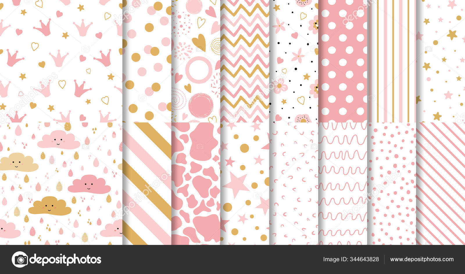 Set Of Cute Sweet Pink Seamless Patterns Wallpaper For Little Baby
