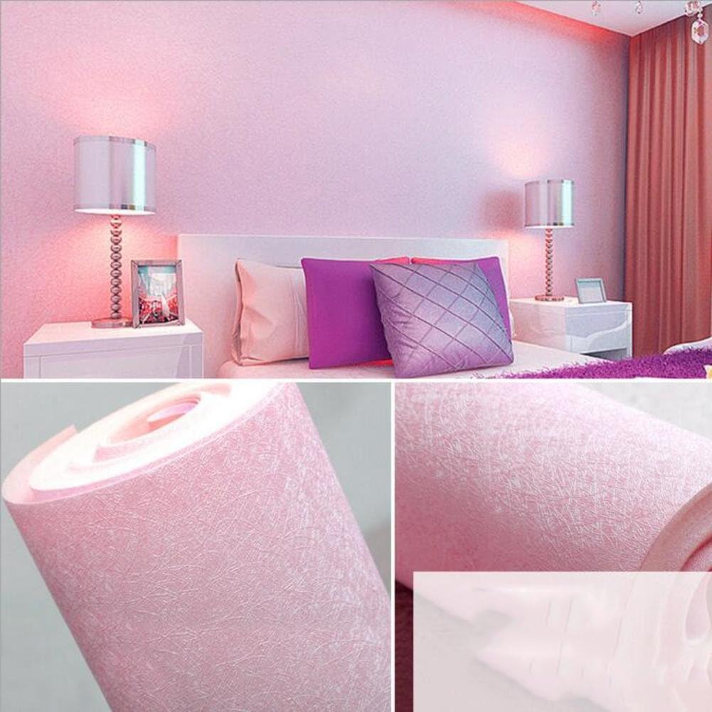 Simple Wallpaper Pink Dark Blue Silk Beige Solid Color Pvc