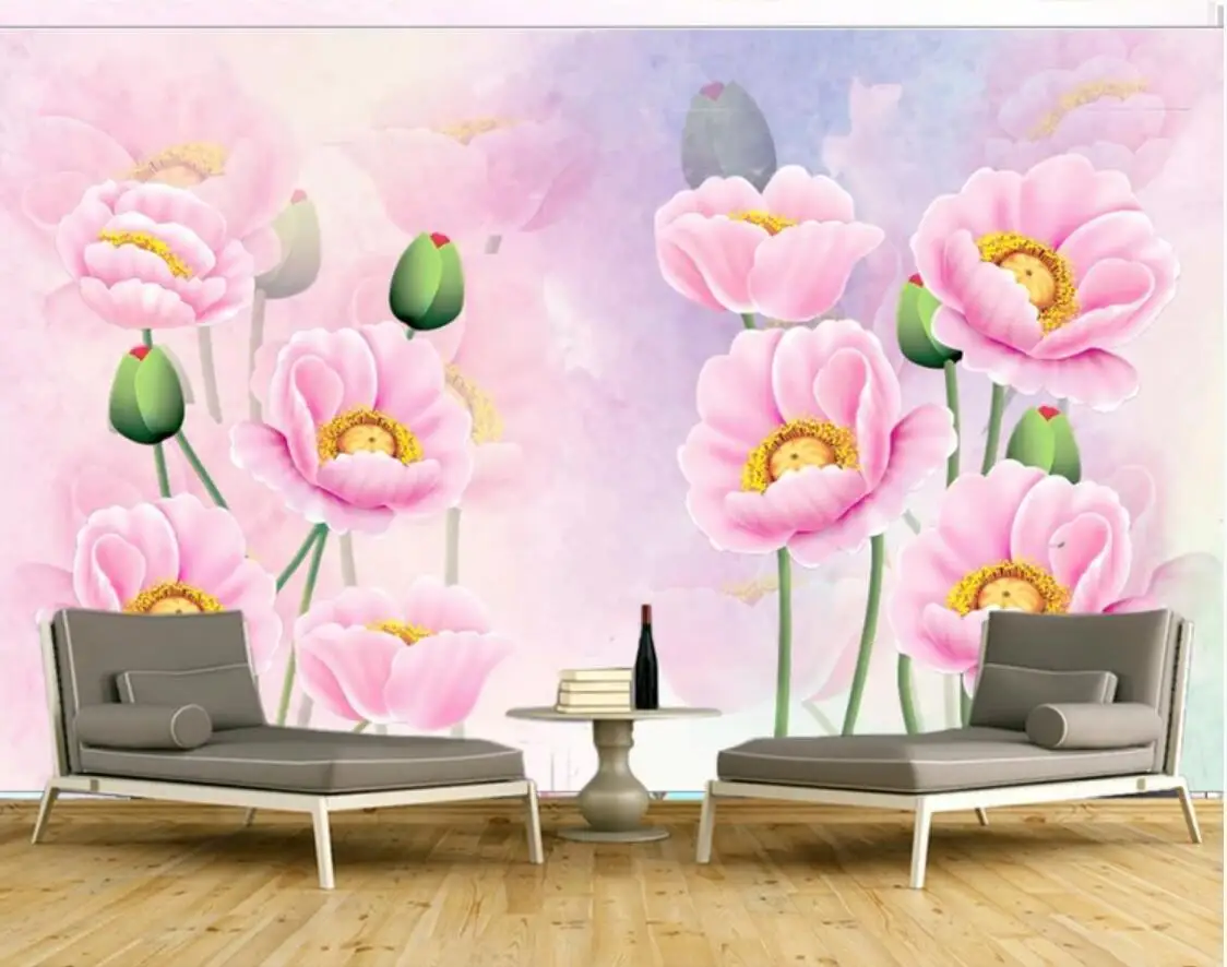 Pink Poppy Flower Photo Wallpaper Rolls For Living Room Bedroom