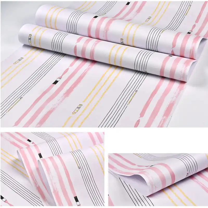 Cute Blue Pink Stripe Wallpaper Kids Bedroom Wall Decal Self