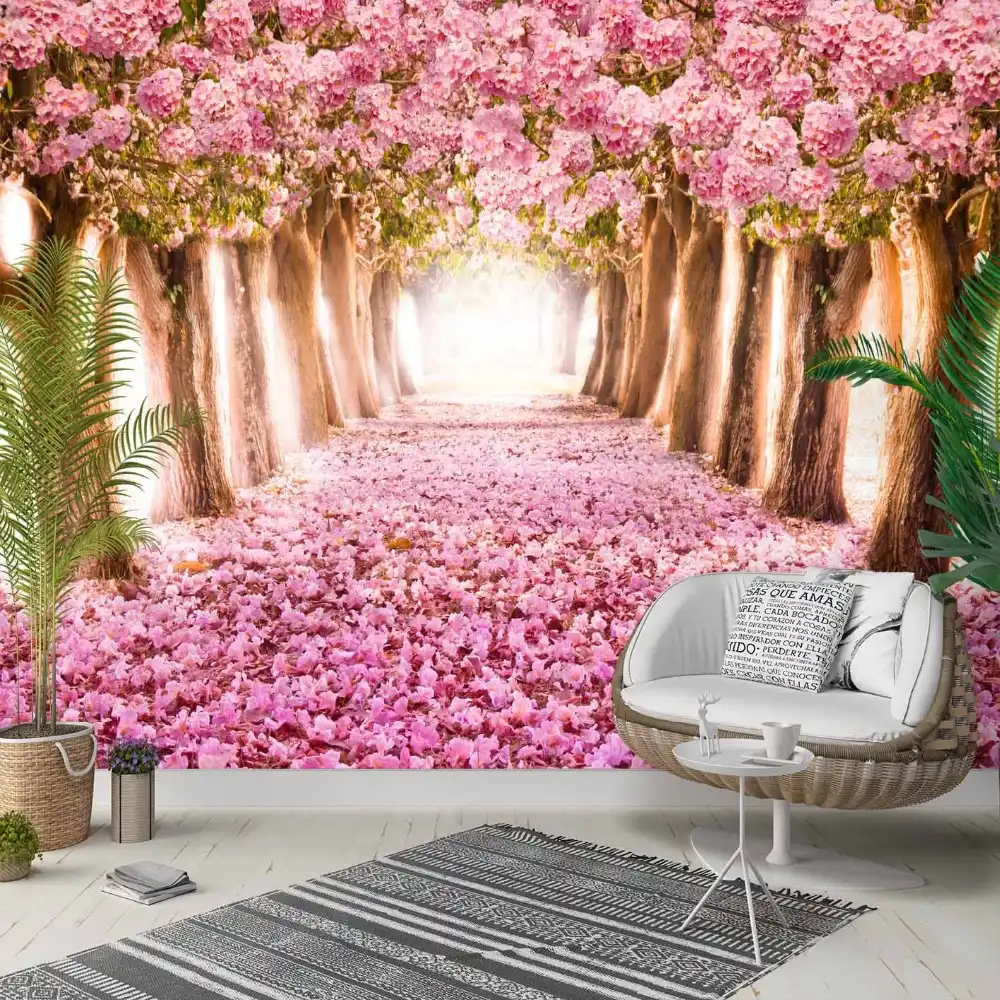 Else Pink Trees Rose Leaves Love Way Road 3d Photo Cleanable Fabric Mural Home Decor Living Room Bedroom Background Wallpaper Aliexpress