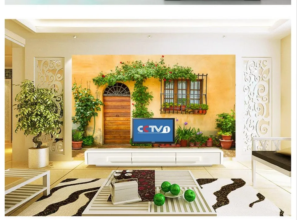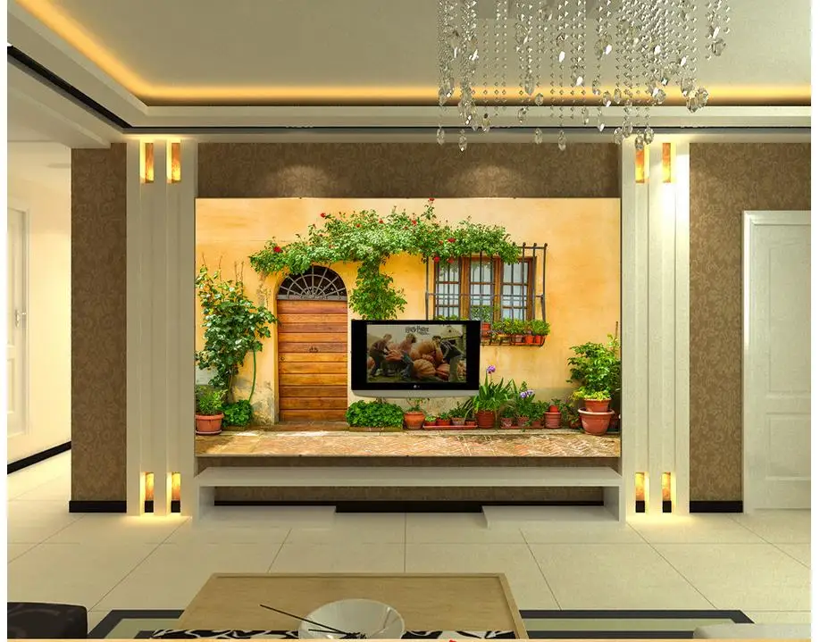 3d Customized Wallpaper Outside The Window Flower Pots European
