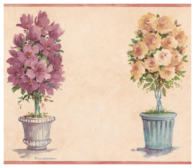 Wall Border Vintage Flowers In Pots Buttermilk Tan Wallpaper
