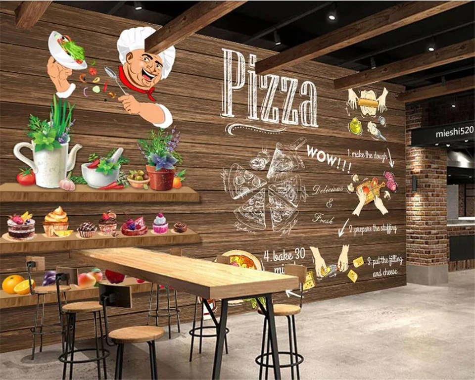 Beibehang Custom Wall Mural Hand Painted Pizza Dining 3d Photo