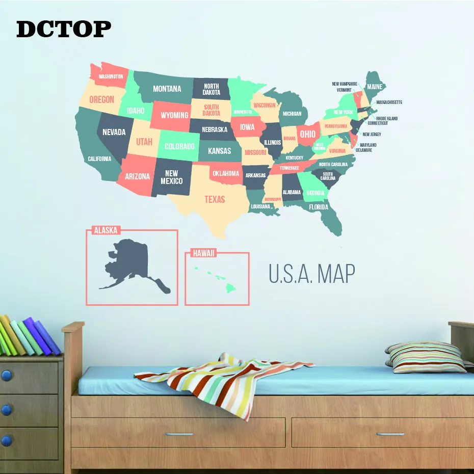 Pretty Color Usa Map American States Map Wall Decal Kids