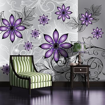 Silver And Purple Floral Pattern Wallpaper Mural Amazon Com