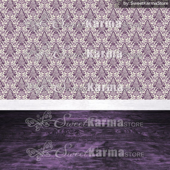 Purple Damask Wallpaper Digital Photography Background Image Etsy