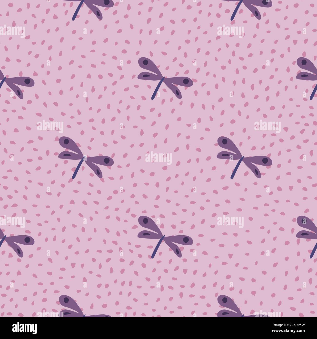 Cute Dragonfly Seamless Pattern On Dotted Background Simple