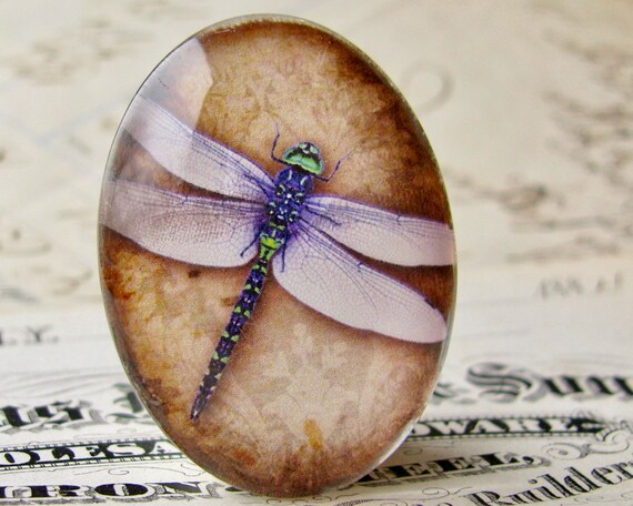 Purple Dragonfly Cabochon On Brown Wallpaper Artisan Crafted Etsy