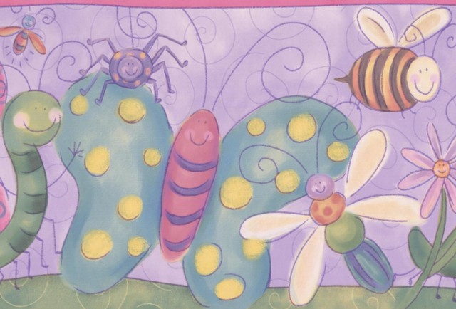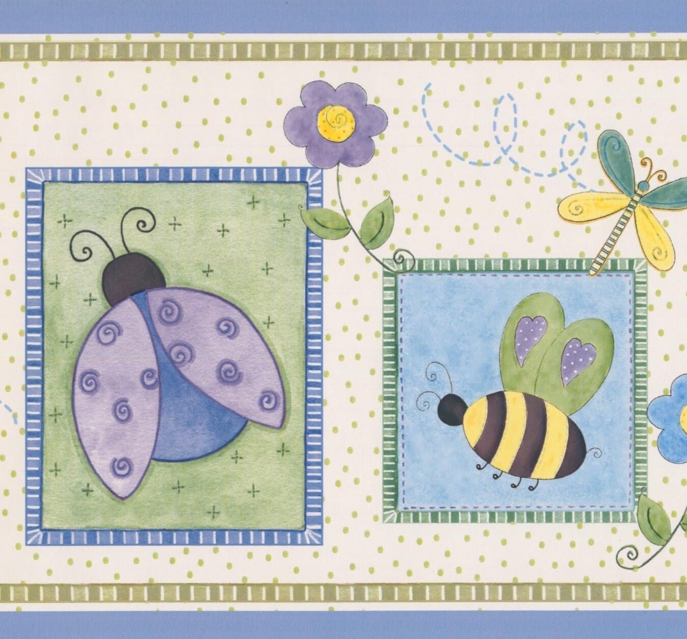 Retro Art Dragonfly Butterfly Lady Bug Grasshopper Purple Green