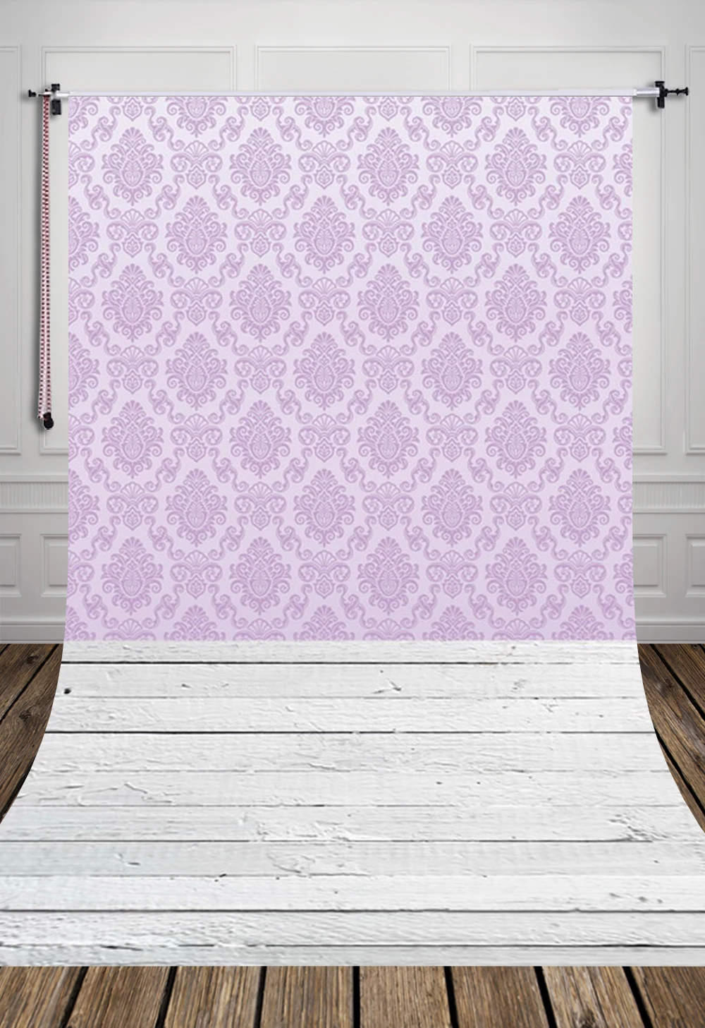 Huayi Purple Wallpaper Damask Backdrop With Gray Vintage Wood