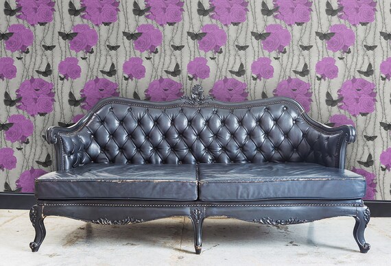 Dark Purple Flowers With Butterflies Wallpaper Mural Wallpaper