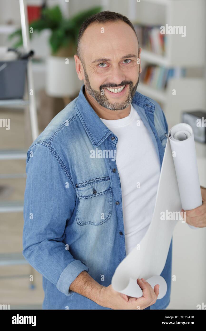 Man Putting Up Wallpaper Stock Photo C Nieto Angel Photography33