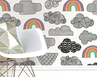 Clouds Rainbows Wallpaper Nursery Walls Kids Bedroom