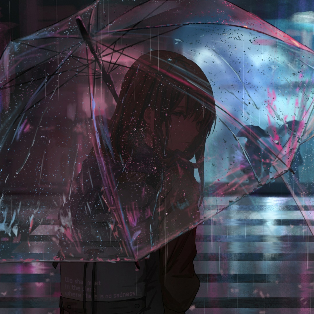 2048x2048 Anime Girl With Umbrella In Rain Ipad Air Wallpaper Hd
