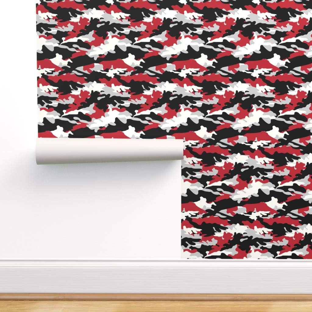 Spoonflower Pre Pasted Removable Wallpaper Camouflage Red Black White Boys Camo And Grey Woodland Army Lumberjack