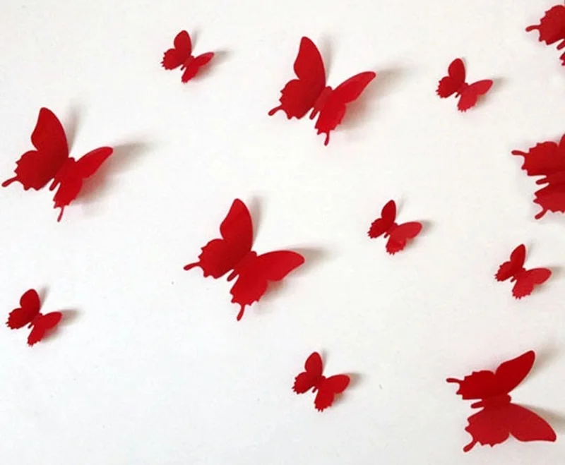 Red Color 12pcs Red Colorful Beautiful Butterfly Pvc Fridge Magnet