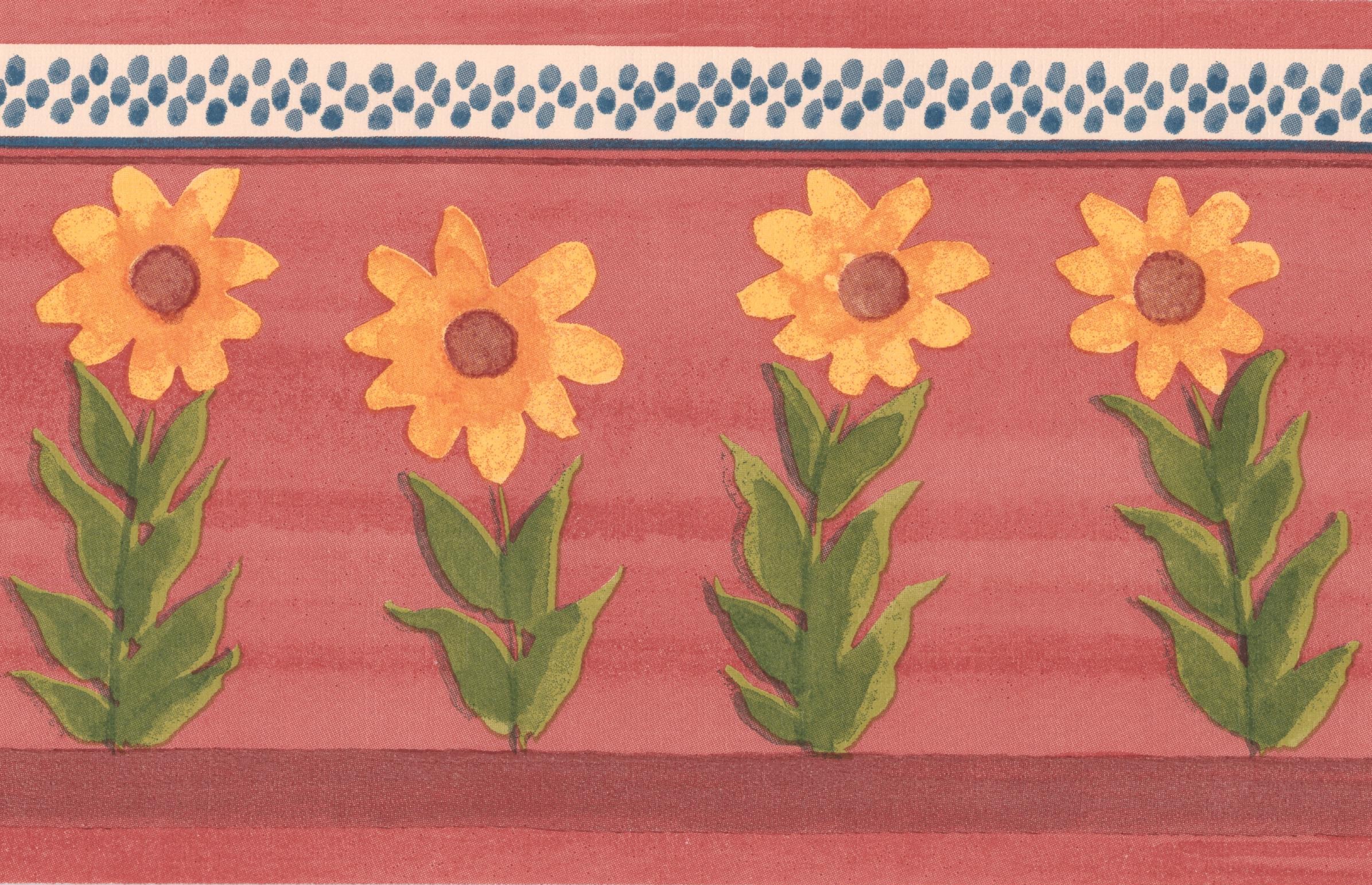 Yellow Flowers Red Floral Wallpaper Border Kids Design Roll 15 X