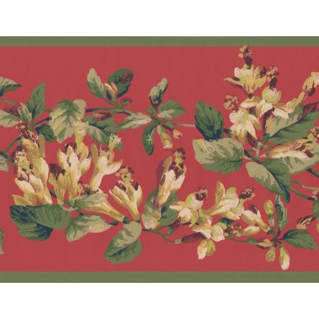 White Yellow Flowers On Vine Red Floral Wallpaper Border Retro