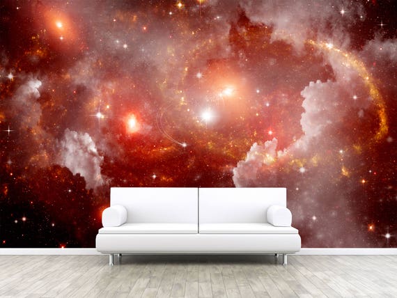 Red Galaxy And Stars Photo Wallpaper Removable Wall Etsy