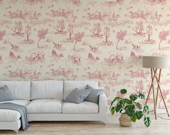 Colonial Red And Cream Toile Wallpaper Toile Wallpaper Discount