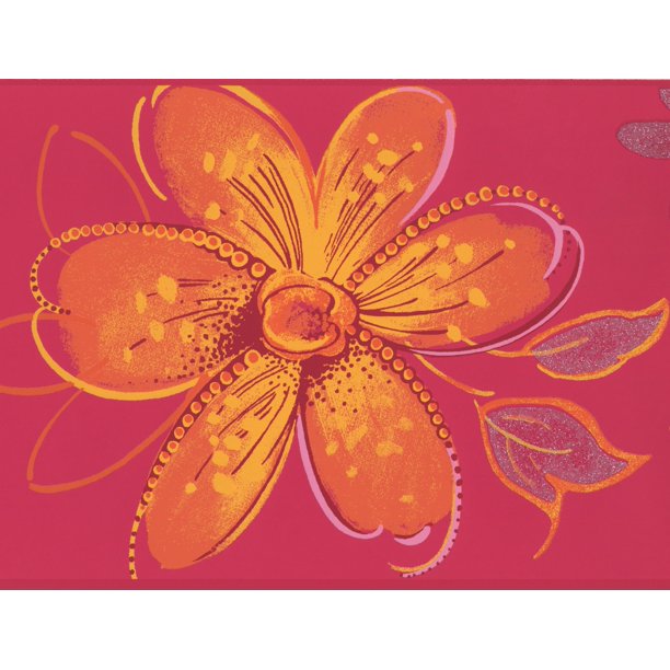 Glowing Orange Flowers Red Wallpaper Border For Kids Teens Roll