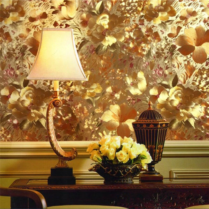 Wellyu European Bright Gold Metal Reflective Plant Wallpaper Living Room Luxury Bedside Background Wallpaper Gold Foil Ktv Oboi Plant Wallpaper Background