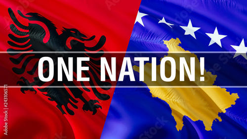 One Nation On Albania And Kosovo Flags Waving Flag Design 3d