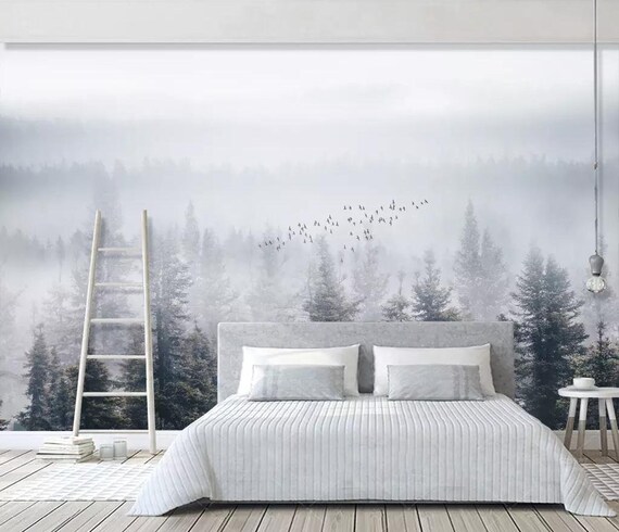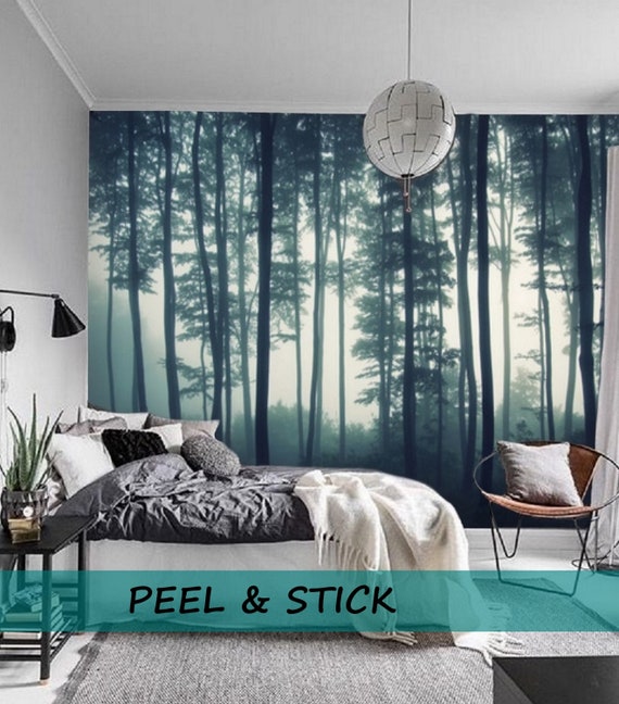 Misty Forest Wall Mural Removable Wallpaper Mural Forest Etsy