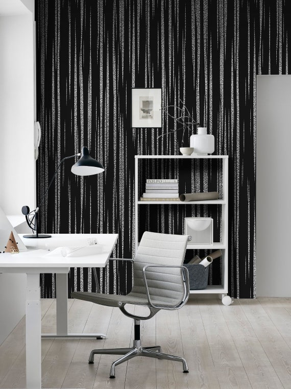 Abstract Metallic Removable Wallpaper Black And Gray Wall Etsy