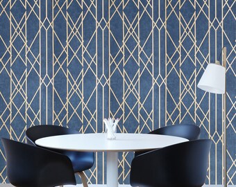 Geometric Removable Wallpaper Blue And Gold Bedroom Blue And